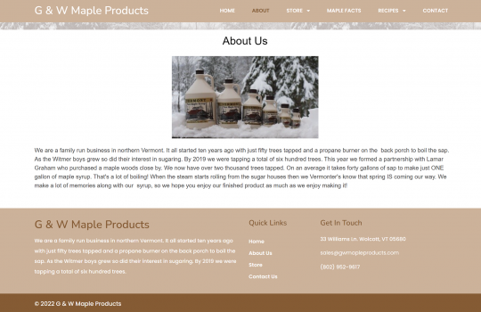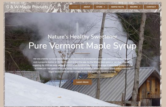 G&W Maple Products is a Vermont maple syrup producer. They came to us looking for a site to showcase their maple products and also to be able to sell them online. We created a site based on their existing photography (including some quite stunning images) using elements as border and backgrounds to create an organic, late winter/early spring feel to the site, reflective of sugaring season. We also created an online store, which is very easy for them to edit, remove and add products.